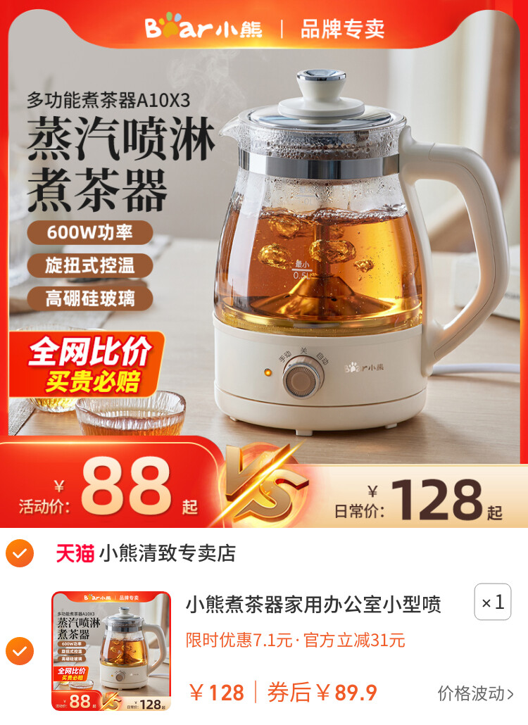 【下单链接】98¥ HU006 rOIHfW6Xbwv¥ https://m.tb.cn/h.SkLgZiJ 小熊煮茶器家用办公室小型喷淋式煮茶器电茶炉养生壶蒸汽玻璃茶壶