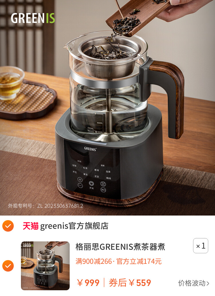 【下单链接】57¥ CZ009 vzjGfW62qjY¥ https://m.tb.cn/h.S9CFENd 格丽思GREENIS煮茶器煮茶壶喷淋式家用养生壶泡茶用烧水纯钛蒸汽