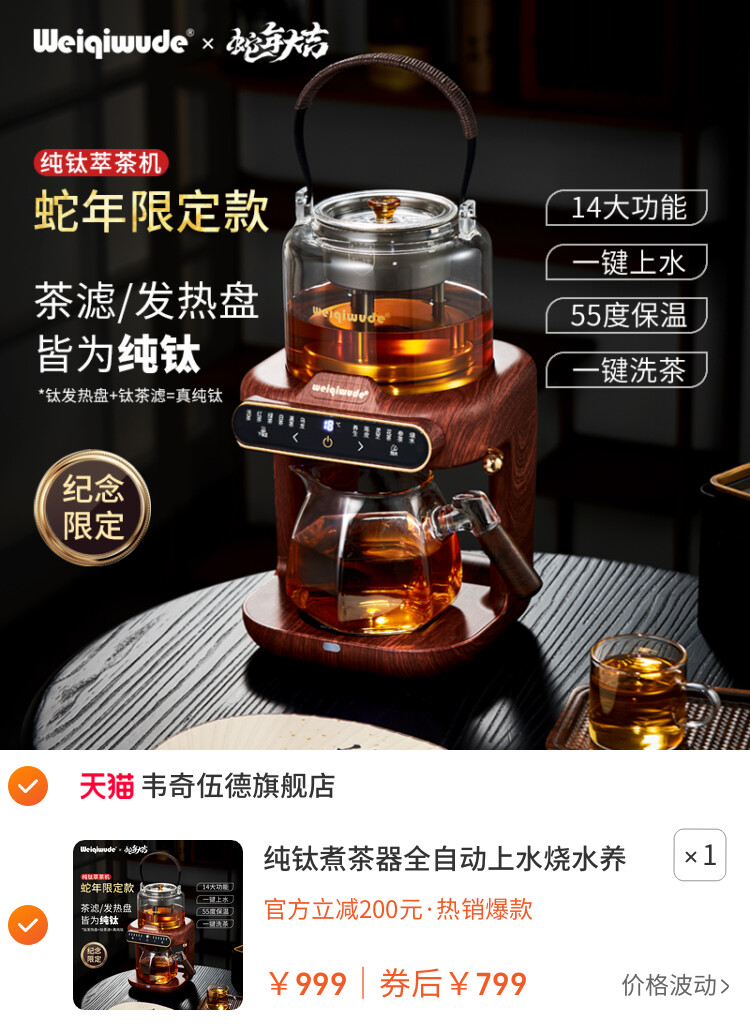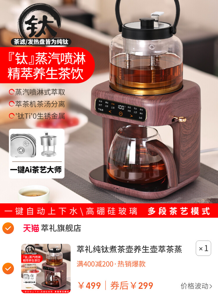 萃礼纯钛煮茶壶养生壶萃茶蒸汽煮茶器全自动真空喷淋蒸煮上水一体
