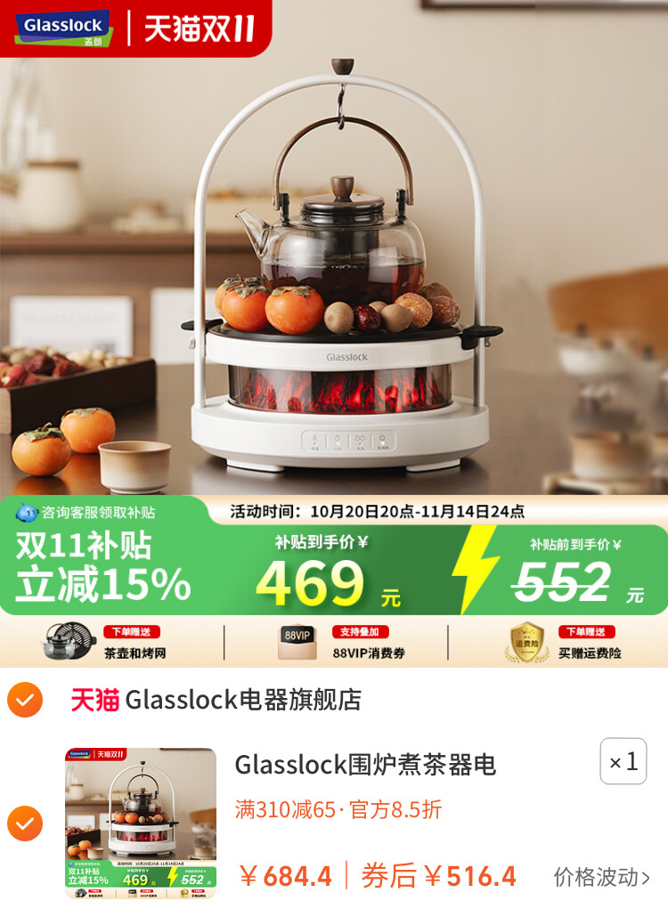 【下单链接】18¥ CZ005 icSQfW64pwA¥ https://m.tb.cn/h.SkLRClW Glasslock围炉煮茶器电陶炉盖朗星火炉家用电茶炉全玻璃养生壶